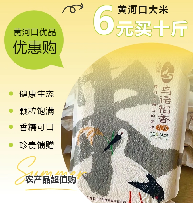 福利大放送!黄河口大米十斤6元购!快来清风湖西门的“黄河口优品”清风驿门店购买吧~