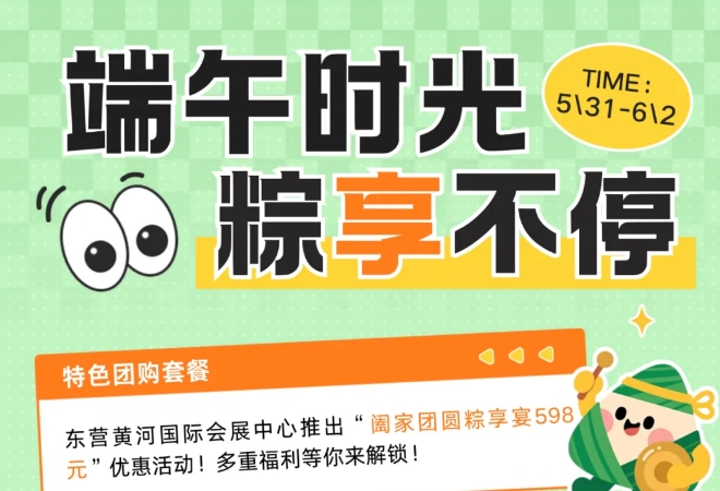 端午佳节将至,粽叶飘香时!东营黄河国际会展中心特别推出"端午食光,优惠'粽'享不停"主题活动,多重福利等你来解锁!