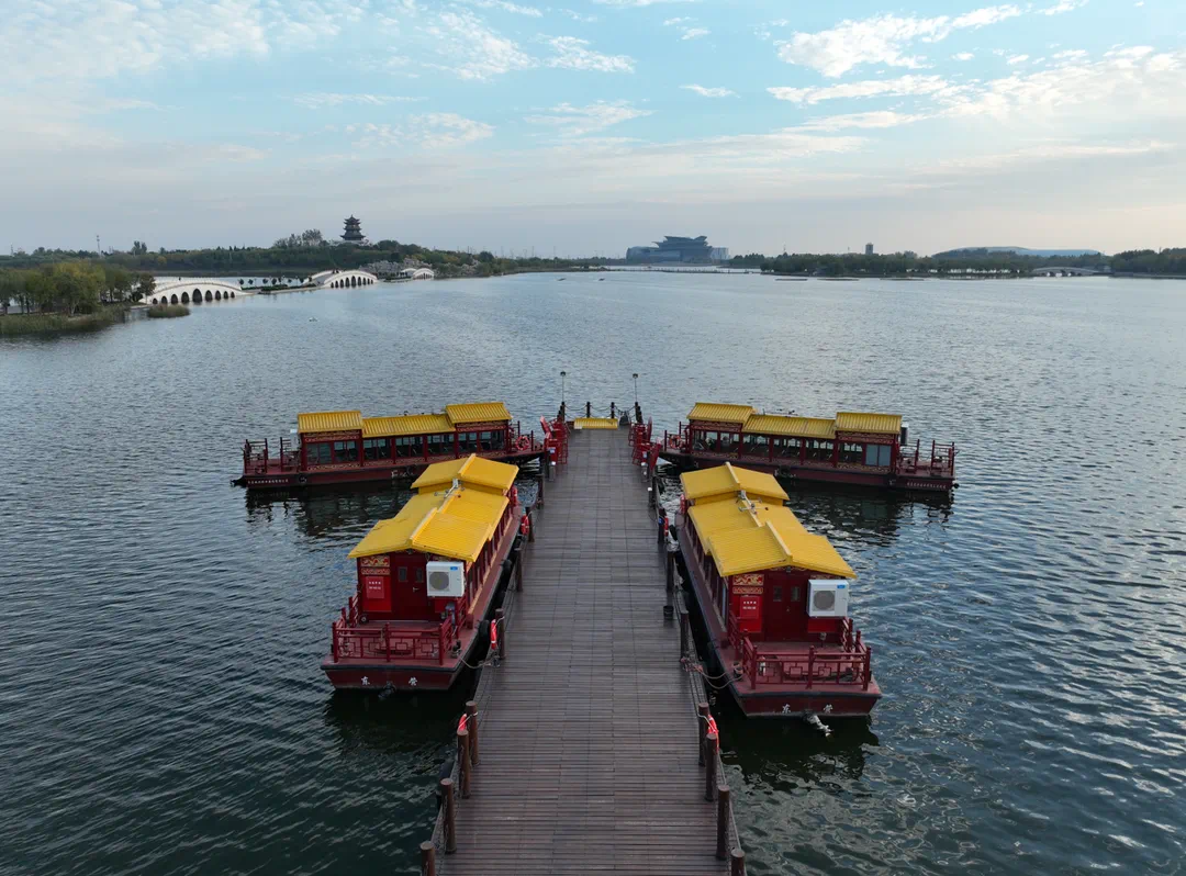 广利河沿线运营项目涵盖了画舫船、电瓶船等水上游览观光项目,同时设有趸船游客服务中心,提供全方位的旅游服务。此外,还包括码头场地租赁、展位等配套服务,以满足不同需求。