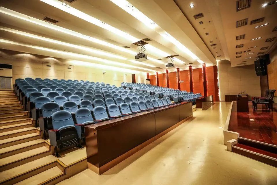 黄河四厅作为阶梯式的会议厅,深蓝主色调烘托出庄重严肃又高端正式的会场氛围。拥有良好的视觉效果,从每个位置都能直接看到舞台及舞台上的人;优越的声学条件,每一个人都能听到舞台上传递出的各种声音;优秀的灯光条件,不仅舞台上的灯光可以单独控制,观众区域的灯光也可以进行多种方式的调节;以及高端的LED高清显示屏,整屏“无拼缝”,色彩与亮度具有高度的一致性与均匀性,满足不同应用领域的要求这里是您举办高峰论坛、党政会议、企业会议等中型会议或活动的 首 选场所。